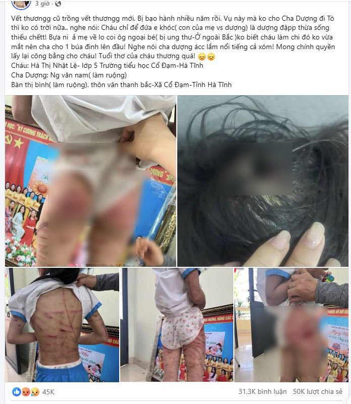 Công an xã Cổ Đạm, tỉnh Hà Tĩnh cho biết, đơn vị đang vào cuộc điều tra vụ bé gái lớp 5 nghi bị bạo hành, trên người xuất hiện nhiều vết thương.
