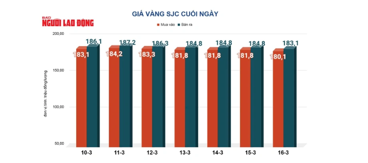 Theo báo Người lao động đăng tải bài viết với tiêu đề: “Giá vàng hôm nay, 17-3: Sụt giảm rất mạnh”, nội dung chính như sau: