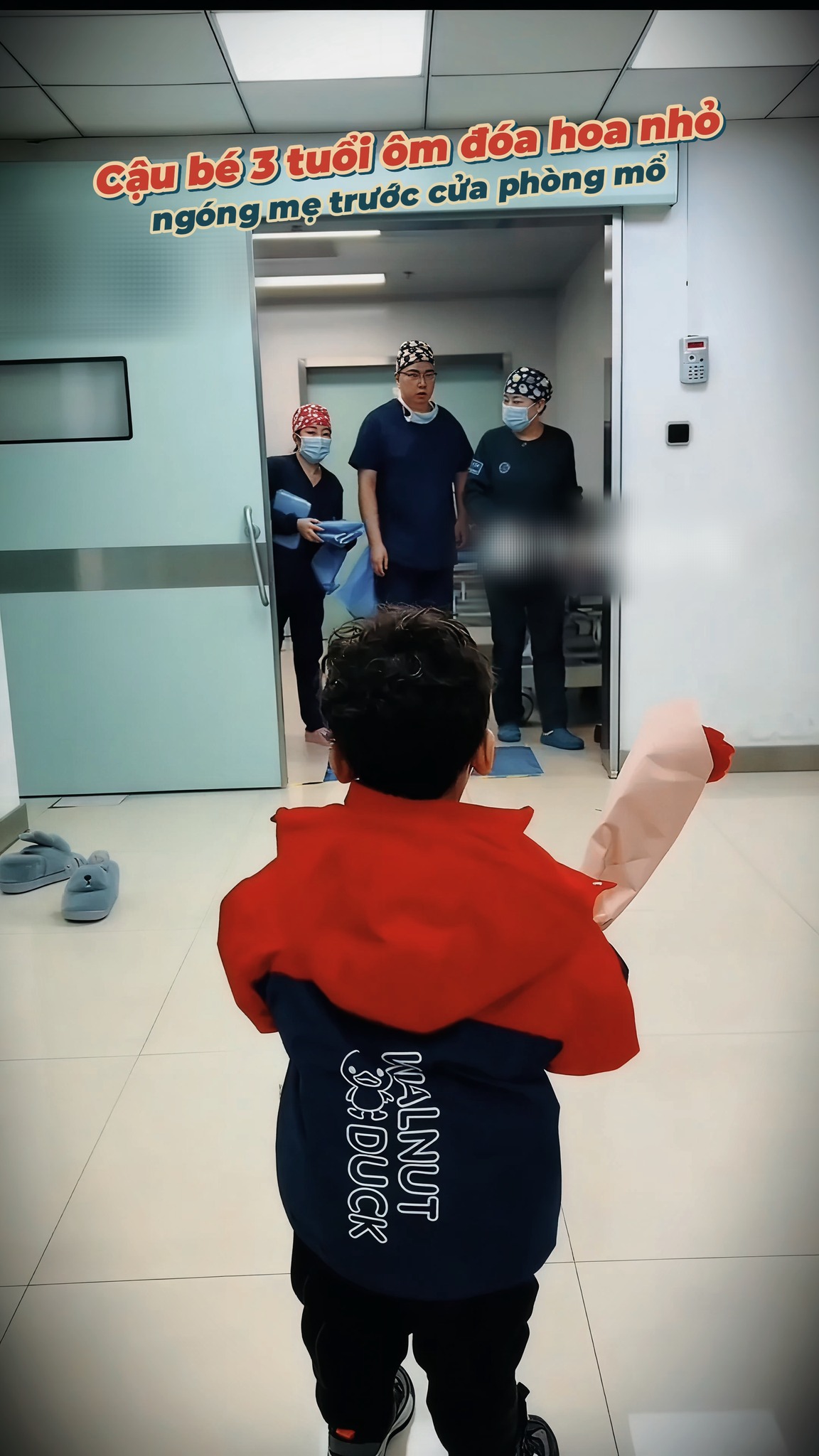 Xúc động khoảnh khắc cậu bé 3 tuổi cầm đóa hoa nhỏ đứng trước cửa phòng mổ chờ mẹ – em đâu hay rằng, đó là lần cuối cùng em được tặng hoa cho người mình yêu thương nhất