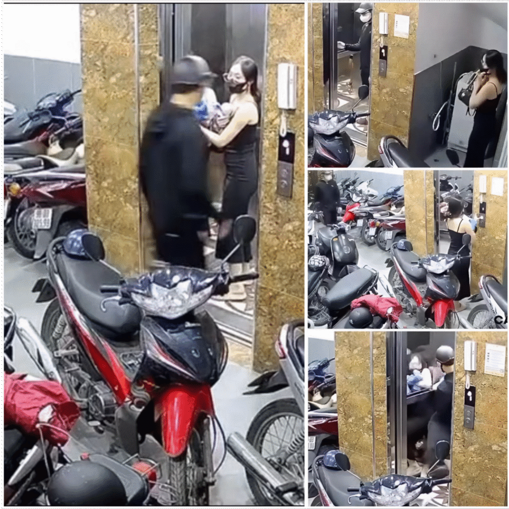 Cô gái tỏ ra rất cảnh giác, liên tục để ý đến nam thanh niên và mon men đến chỗ bấm thang máy. Khi cô gái bước vào thang máy, nam thanh niên cũng bước vào và bất ngờ có hành động khiếm nhã với cô gái này. Toàn bộ sự việc được camera an ninh ghi lại.